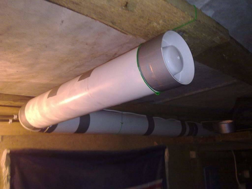 - Увеличение диаметра вентиляционных каналов. При площади подвала не более 10-12 квадратных метров выхлопная труба может иметь сечение 120 * 120 мм, а если она единственная – 150 мм.