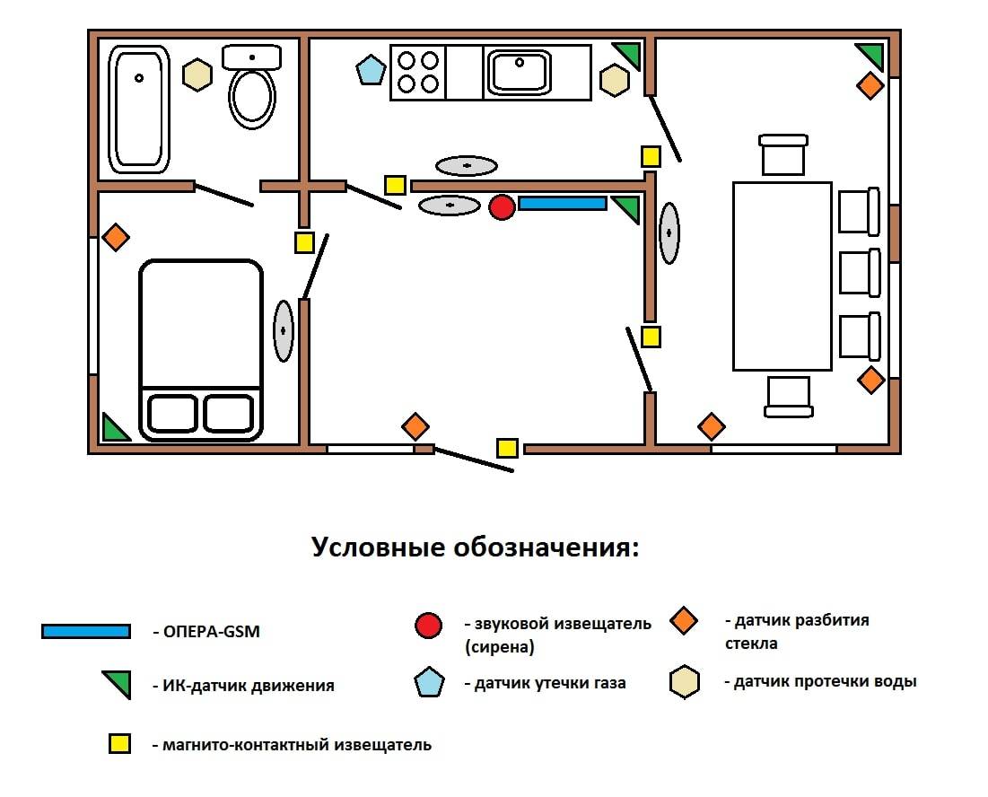 Количество извещателей напрямую зависит от площади помещения, и какое пространство сможет охватить для контроля один элемент сигнализации.