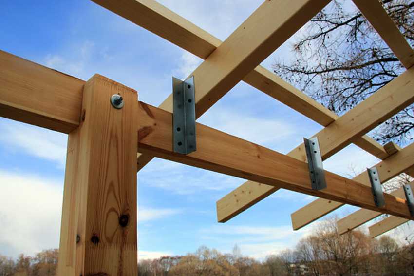 - установите опоры, расстояние между ними зависит от вида конструкции и веса отдельных элементов, они также могут выступать за перила и таким образом поддерживать крышу.