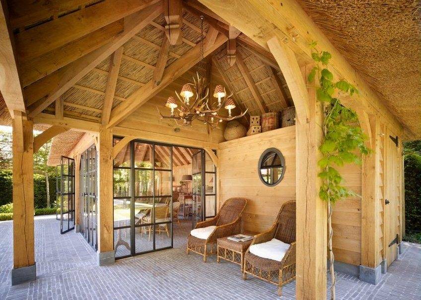 С помощью дерева можно собрать любую уникальную конструкцию веранды
