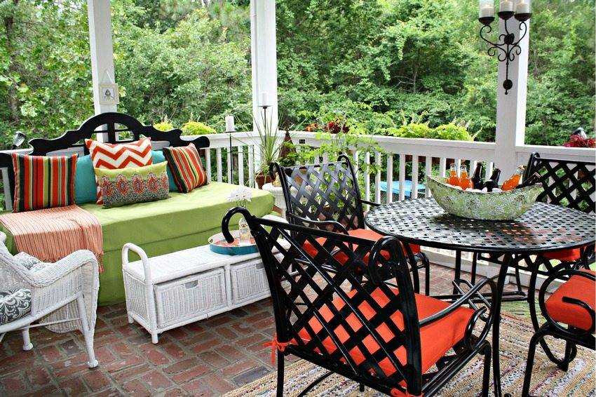 Мебель для летней веранды выбирают легкую, чтобы можно было ее занести в дом