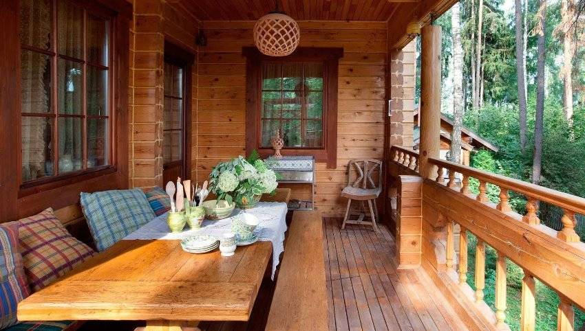 - мебель и другие предметы интерьера на открытых верандах быстро покрываются пылью или отсыревают, поэтому они должны изготавливаться из влагостойких материалов.