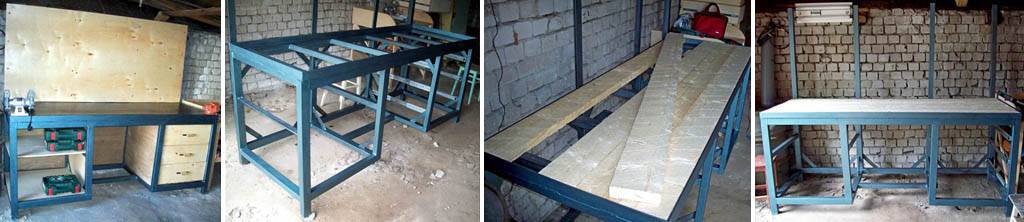 Последовательность изготовления верстака для гаража выглядит следующим образом: