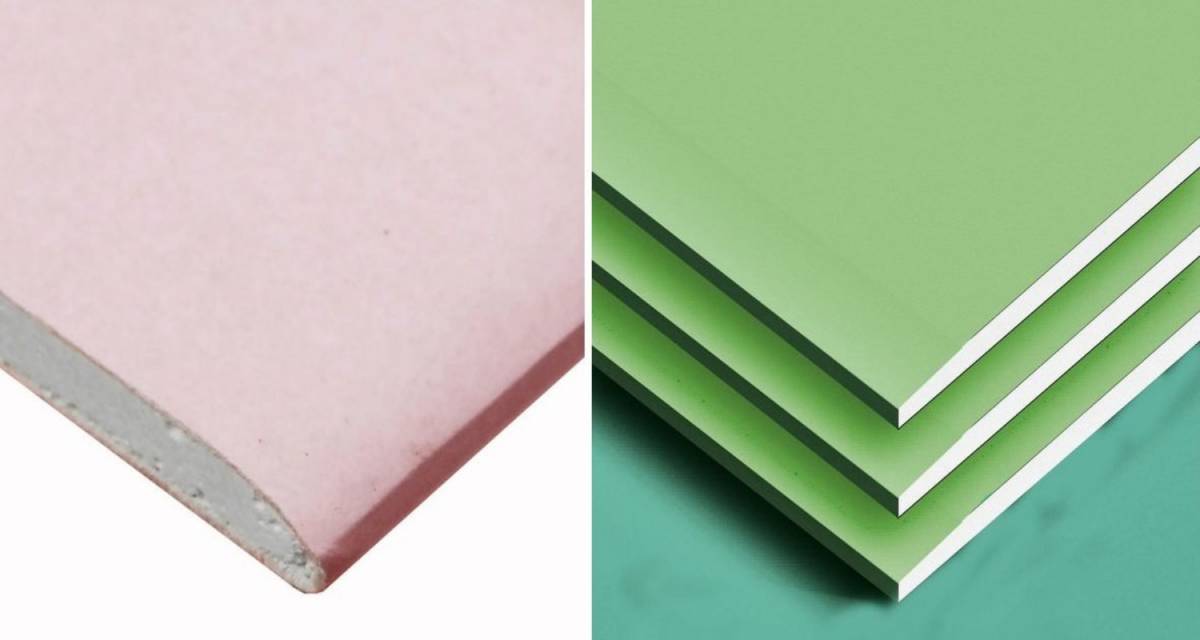 - Влагостойкий огнеупорный – ГКЛВО красный тон.