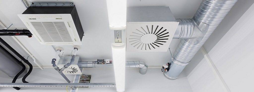 Монтаж системы вентканалов, как правило, осуществляется в малозаметных местах, например, за подвесными потолками.