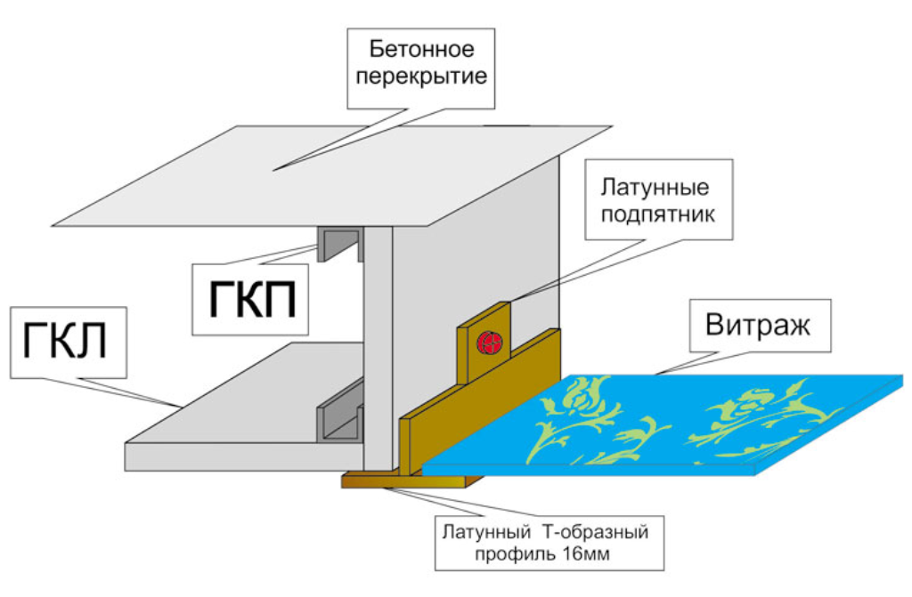Поэтому мастера по установке витражей рекомендуют использовать следующую технику монтажа ниш в гипсокартонном коробе: