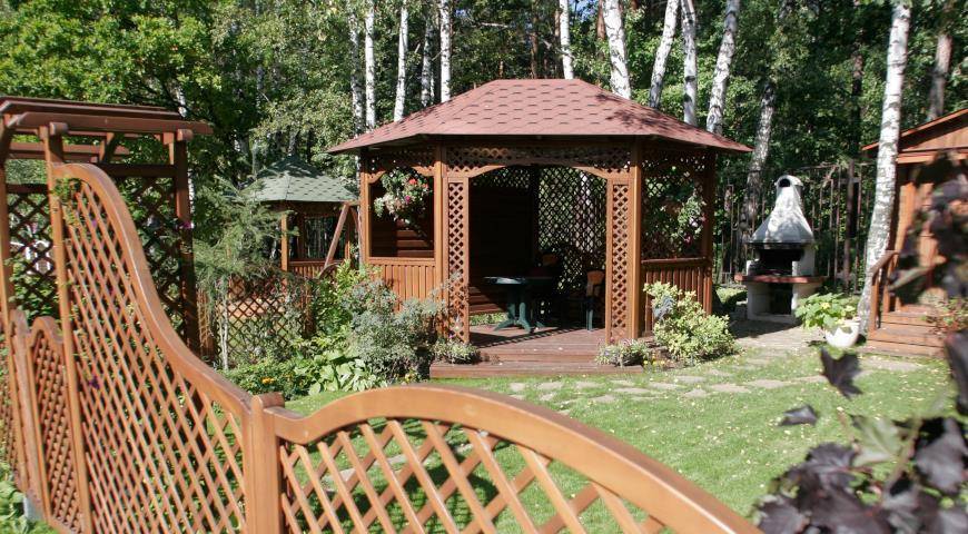 Деревянная ограда – отличный фон для небольших деревьев, кустарников, лиан и цветов, выбор которых ограничивается только фантазией владельца дачи.