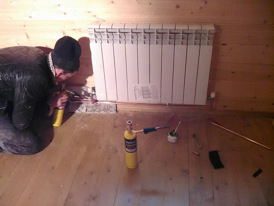 Монтажные работы следует начинать с установки отопительного котла. Если мощность оборудования не превышает 60 кВт, ставить прибор можно на кухне, если она выше, для котла следует отвести отдельное помещение. К источникам тепла, которые сжигают разные виды топлива, нужно обеспечить приток воздуха. Кроме того, необходимо обеспечить отвод продуктов горения. Сделать это можно при помощи правильно обустроенного дымохода.