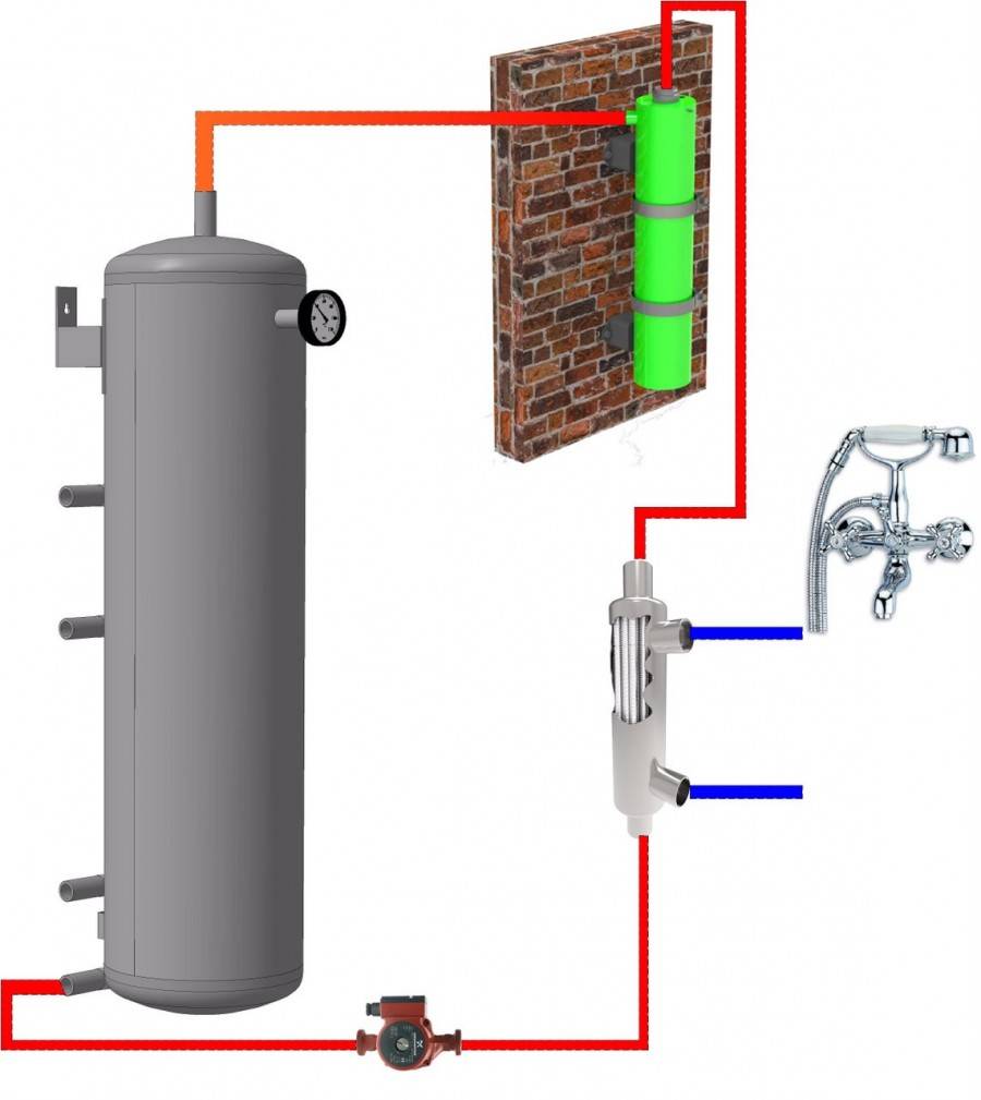 Если вы хотите оборудовать одноконтурную систему для нагревания воды для нужд быта, то пересмотрите монтаж газовой колонки или бойлера. В другом случае вы можете сделать двухконтурную систему, которая предназначена не только для отопления, но и для нагрева воды.