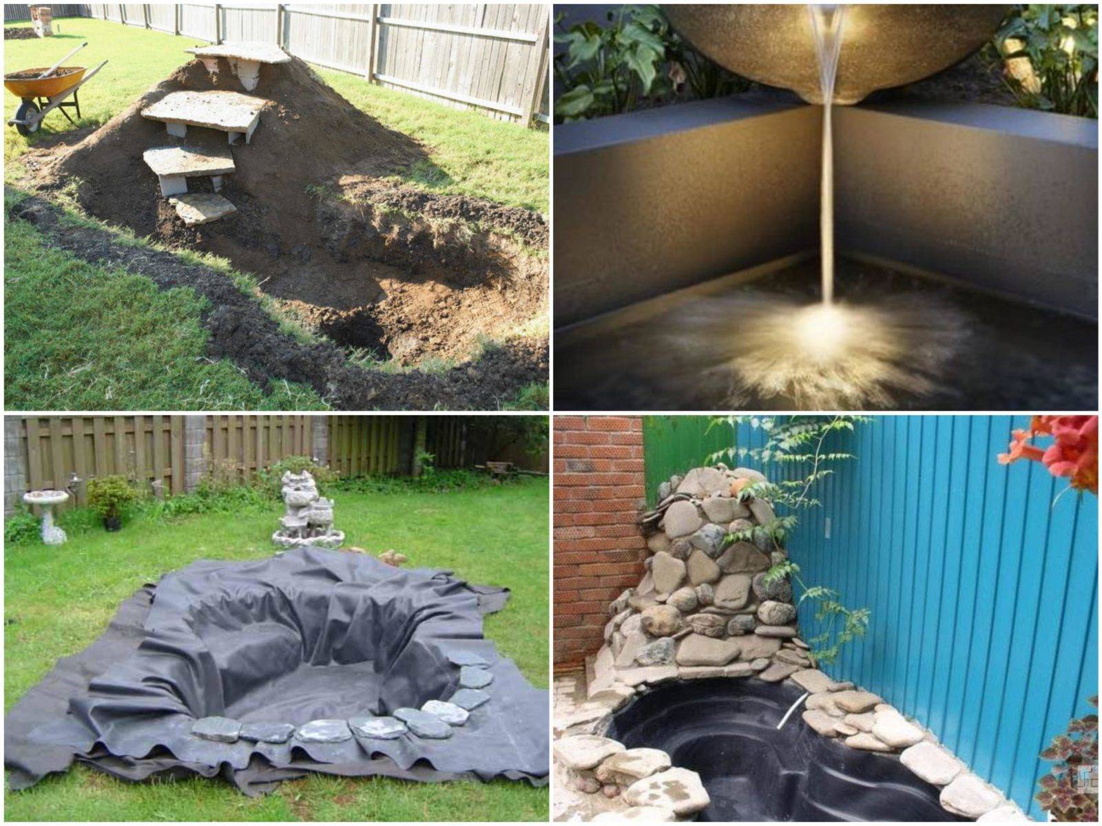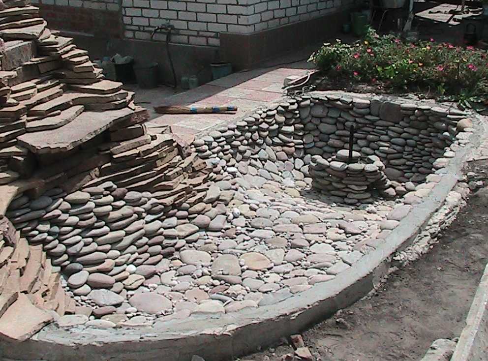 Так как воде всегда нужно где-то собираться, то чаще всего при создании водопадов и фонтанов на даче своими руками используют именно готовые чаши, в которых располагают пруды и иные небольшие водоемы. Впрочем, более сложные формы подразумевают перепад высоты и уже сами по себе представляют основание для будущего водопада.