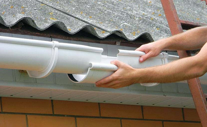 Желоба, как и сами трубы, могут быть как прямоугольной формы, так и круглой. В зависимости от этого выбираются нужные крепежи под них. Поскольку речь о таких фиксаторах шла немного выше, то сейчас остается сказать, что желоба просто вставляются в них.