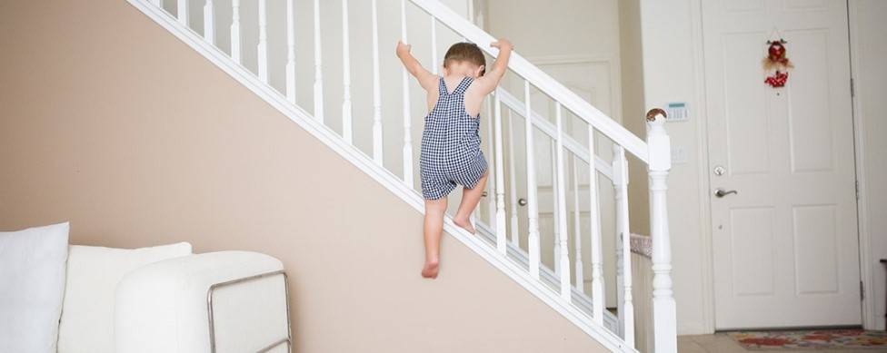 Лестница – это место повышенной опасности для любого человека, что уж говорить о детях. Когда чадо понимает, что может перемещаться по дому на своих четырех, а потом и двух конечностях, то, конечно же, начинает активно все исследовать. А ступеньки – это объект особого внимания, ведь очень интересно, что там вверху/внизу. Кроме того, ребенок может застрять между балясинами руками, ногами и даже головой. Чем выше и круче конструкция, тем больше риск падения.