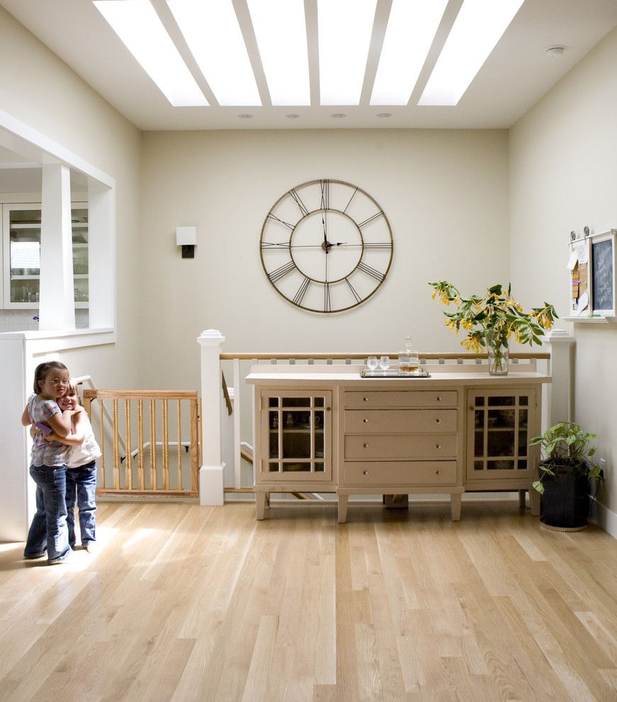 Нижнюю часть лестницы (если у нее нет широкой открытой площадки у основания), перекроют детские ворота, которые могут идеально вписаться во вход на лестничный марш. Если ваша лестница необычна или имеет широкий проход, то вам требуются двери с заборчиком.