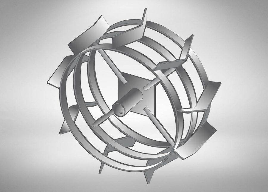 Роторное орудие для мотоблока состоит из 6 кромок, диска и втулки. Его рабочими элементами являются заостренные пластины, которые расположены под разными углами.