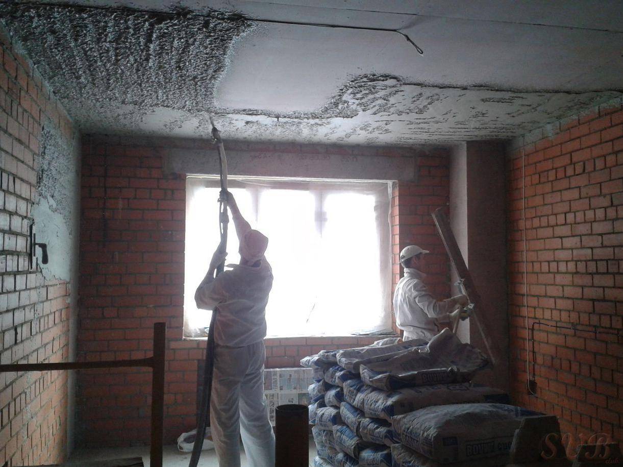 - Для выравнивания потолка раствор делается менее густой, чем для стен. Тогда он лучше липнет к поверхности, и сила тяжести не заставит штукатурку рухнуть.