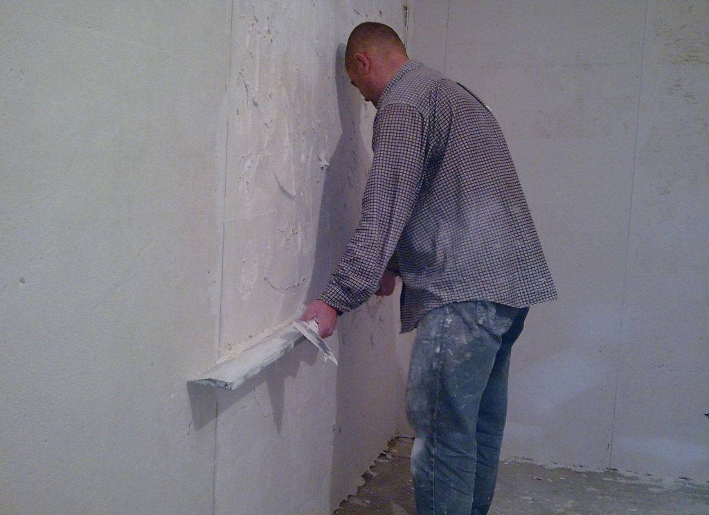 При подготовке таких покрытий тщательно заделывают стыки между плитами. Гладкие фабричные изделия отличаются низкой адгезией, поэтому придется использовать специальный инструмент (бучарды, насадки перфораторов) для создания специальных повреждений. Необходимое сцепление обеспечивают с применением грунтовок, добавляют в раствор гипс. Перечисленные операции повышают стоимость штукатурки стен. Однако надо отметить высокую прочность соответствующих строительных конструкций, отсутствие деформаций в процессе эксплуатации.