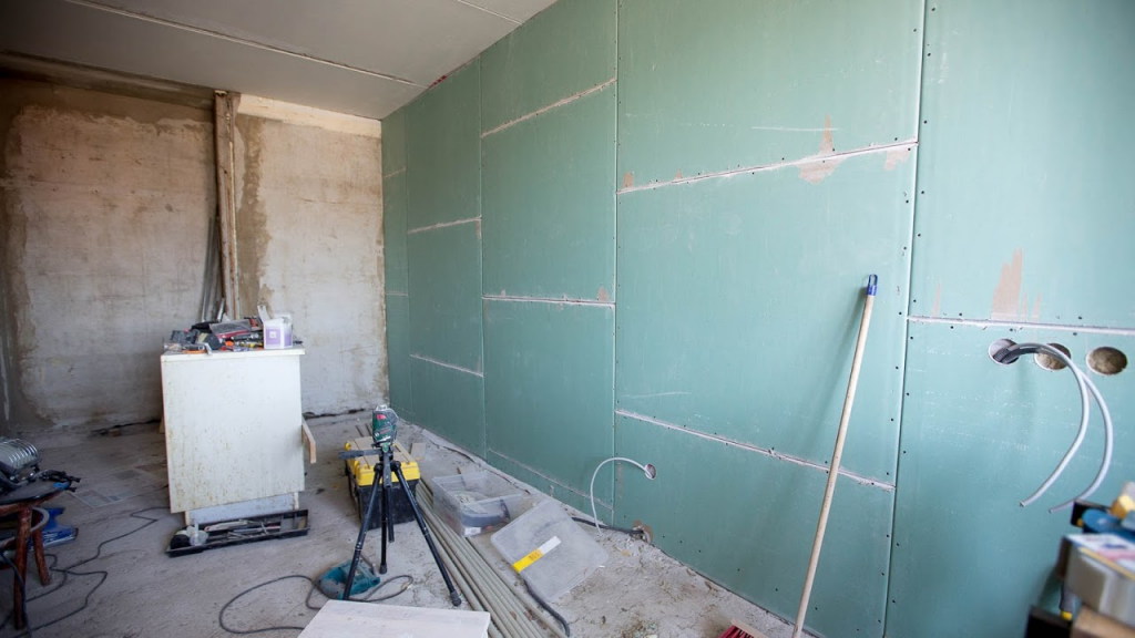 - Выравнивание стен гипсокартоном.