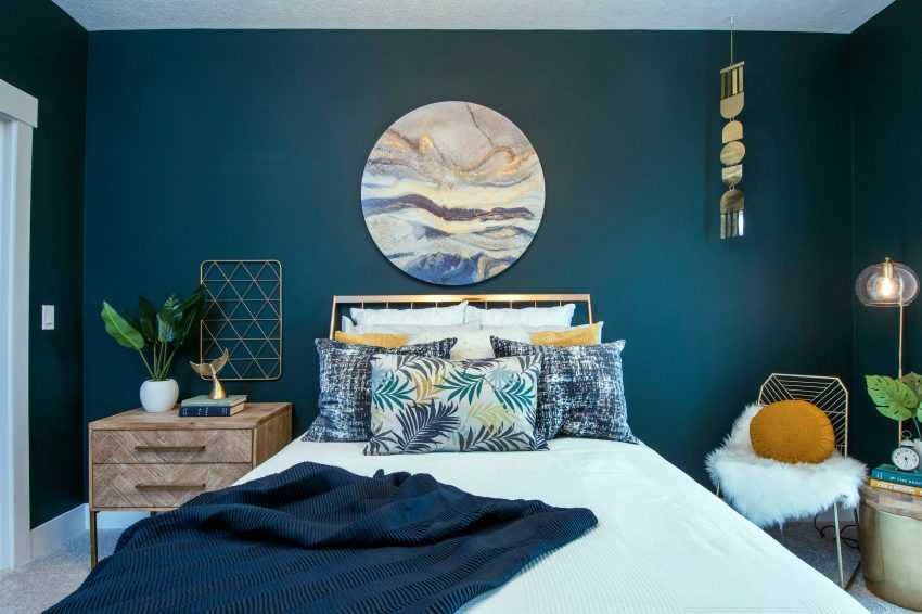 - Пускай это будет либо пастельный оттенок, либо глубокий темный, что больше подходит под стиль и интерьер спальни.